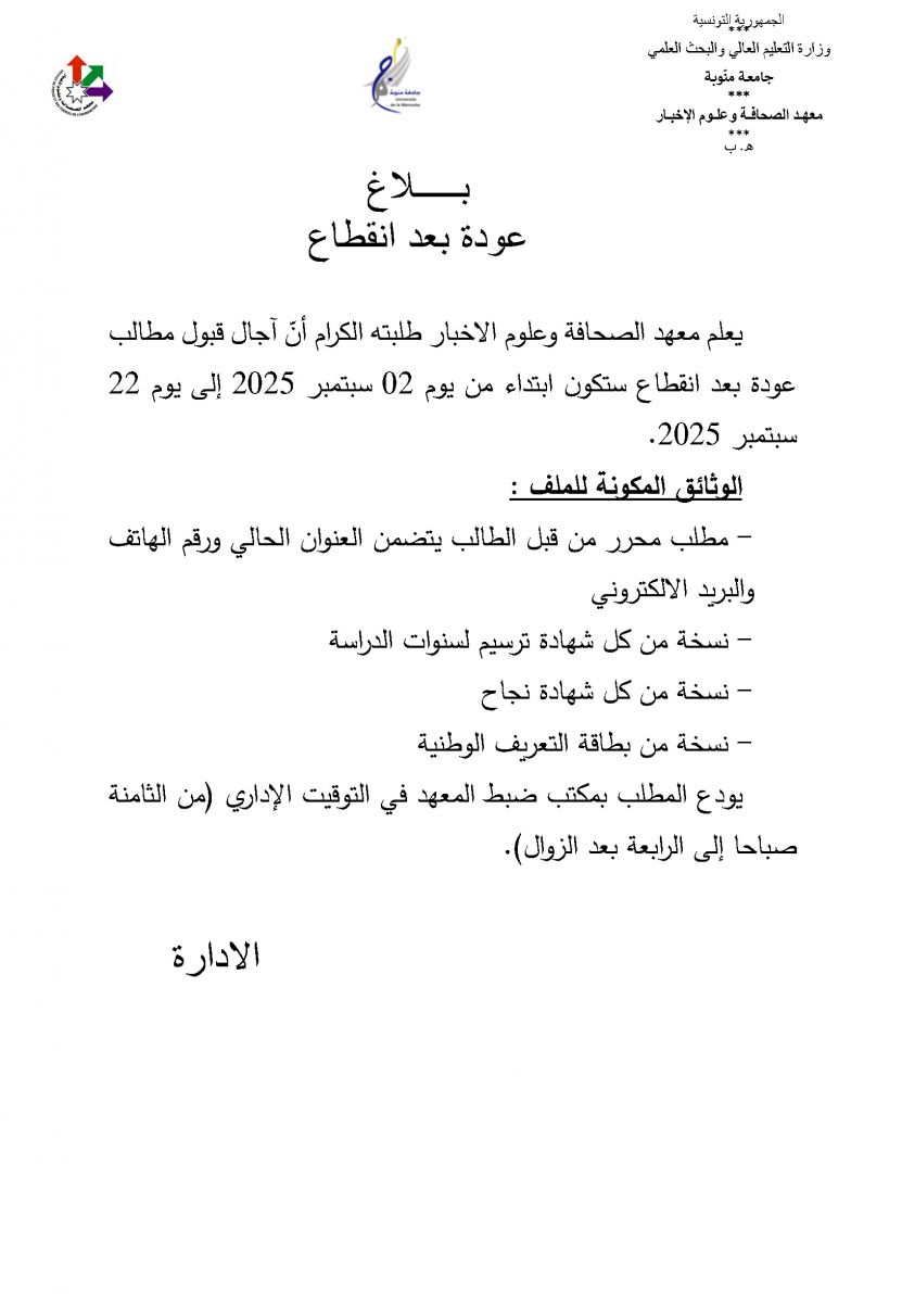 بلاغ عودة بعد انقطاع