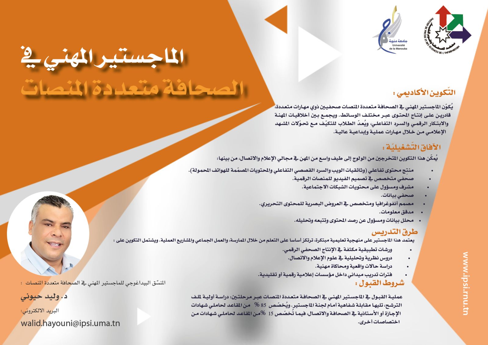 - أن يكون المترشح قد قضى 15% على الأقل من مساره الجامعي في مجالات الصحافة المتعددة المنصات.