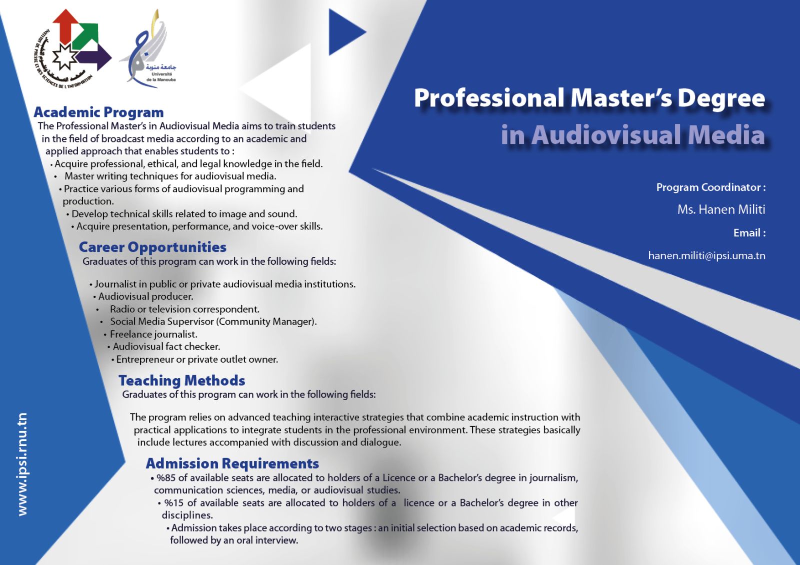Professionnal master in audiovisual journalism