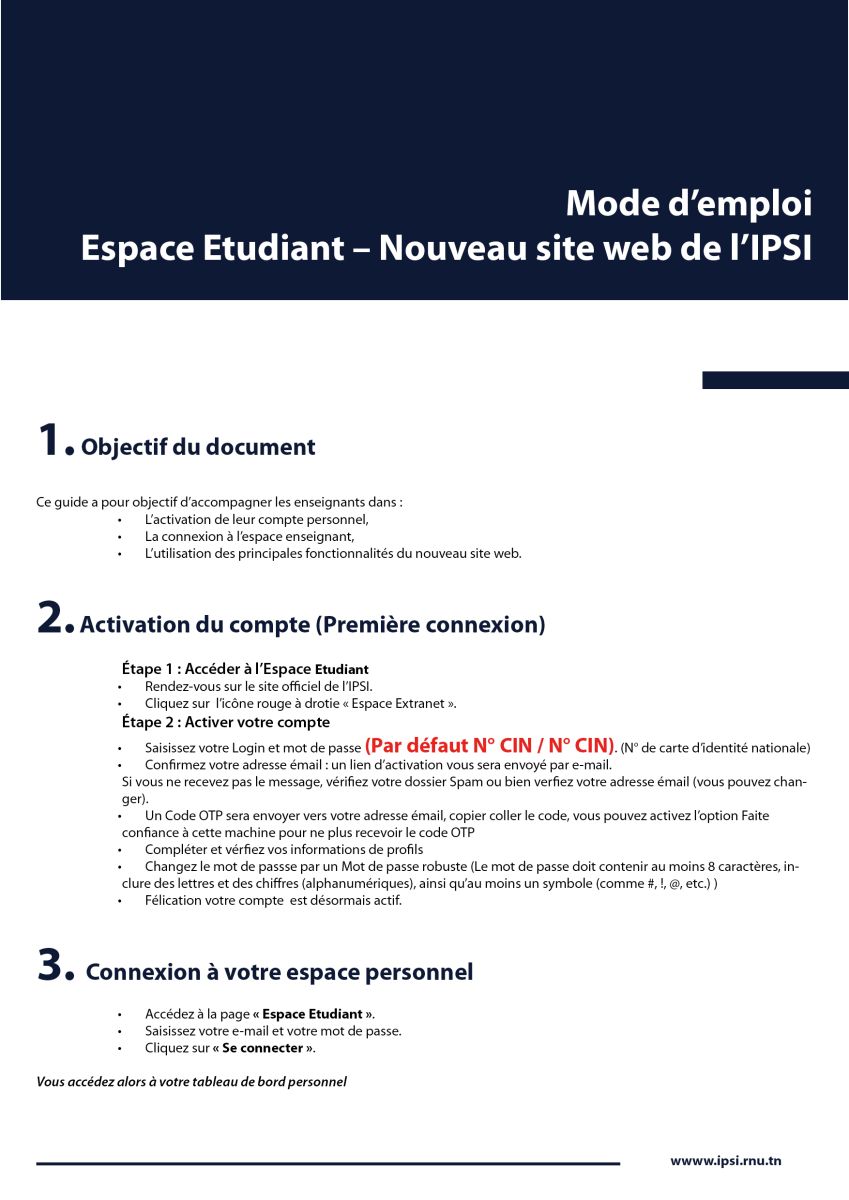 Mode d’emploi Espace Etudiant – Nouveau site web de l’IPSI